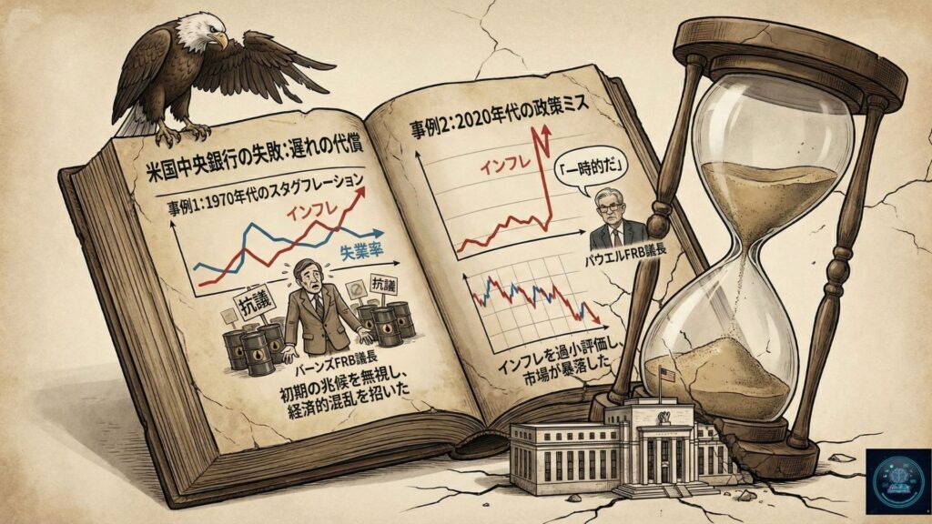 1970年代のアメリカでは、ニクソン大統領からの「再選のために景気を良くしろ(金利を低く保て)」という政治的圧力に屈し、当時のFRB議長アーサー・バーンズはインフレの初期の芽を放置しました。