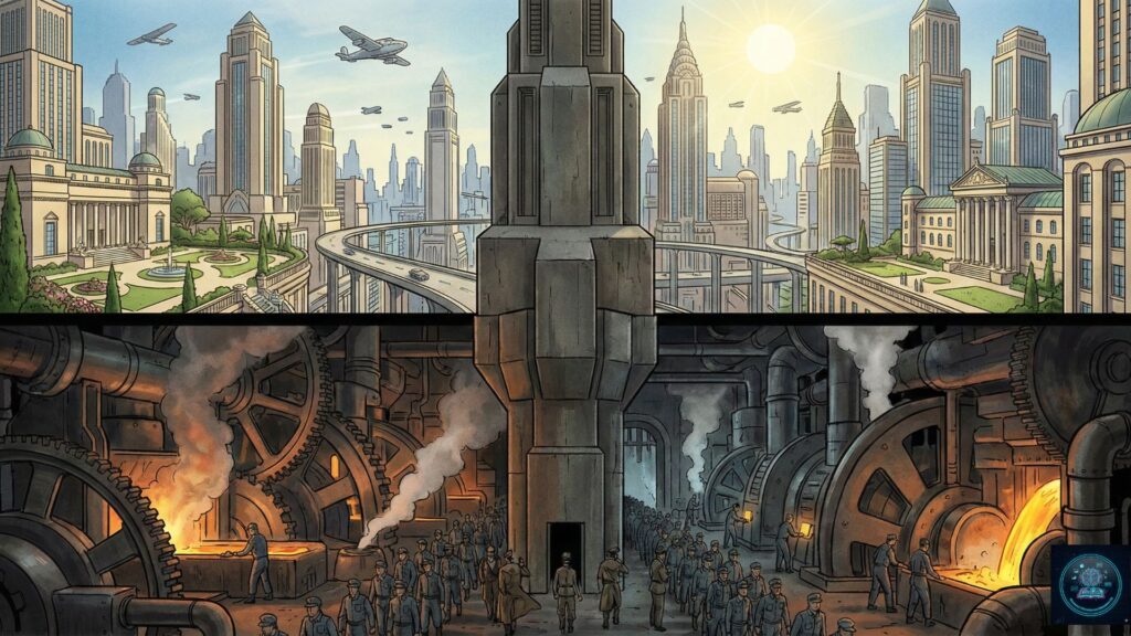 ※映画の舞台設定には諸説ありますが、1927年公開当時の英語版小説(Thea von Harbou著)や宣伝資料において「2026年の世界」と設定されていました。本記事ではその「100年後の予言」をベースに考察します。
