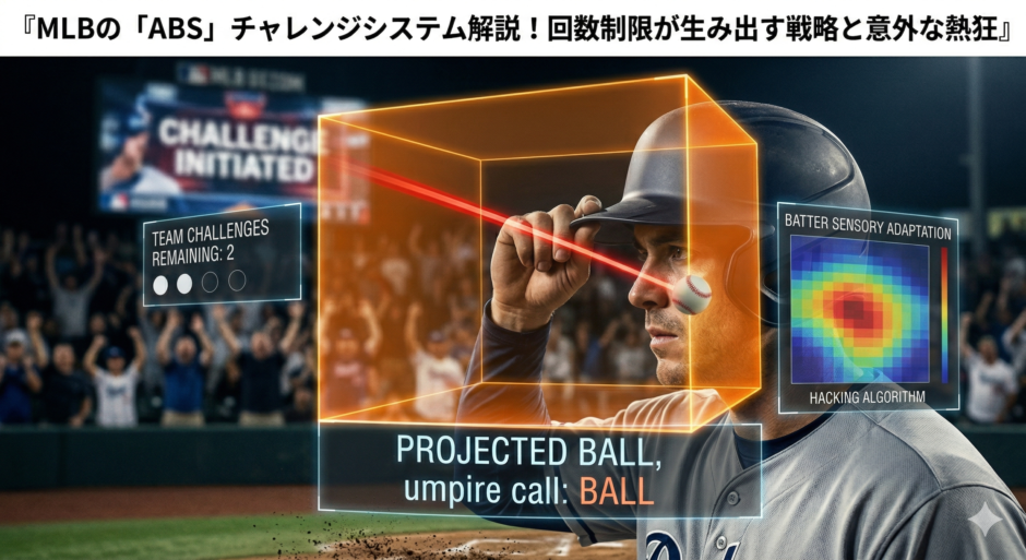 これまで球審とバッテリー、そして打者だけの間にあった緊迫した空気は、ABSチャレンジシステムの導入によってスタジアム全体を巻き込む一大エンターテインメントへと変貌を遂げました。