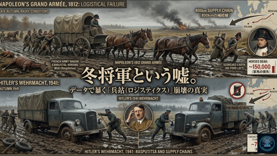 ここまで、ナポレオンとヒトラーのロシア遠征がいかに無謀であり、気候(冬将軍・泥将軍)以前に「ロジスティクスの崩壊」や「過剰拡張(インペリアル・オーバーストレッチ)」によって自滅していったのかをデータと共に紐解いてきました。