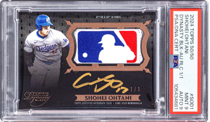 カードには50本塁打50盗塁達成時に使用していたユニフォームのMLBロゴパッチ、ゴールドのペンによる直筆サイン入りで世界に一枚しかないことから過去最高額の約1億6400万円です。