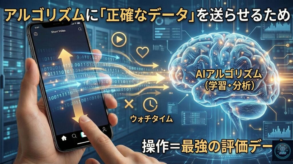 もし自動スクロール機能がオンになっていると、AIは「ユーザーが動画を食い入るように見ているのか、それともスマホを放置してトイレに行っているのか」を判別できなくなります。