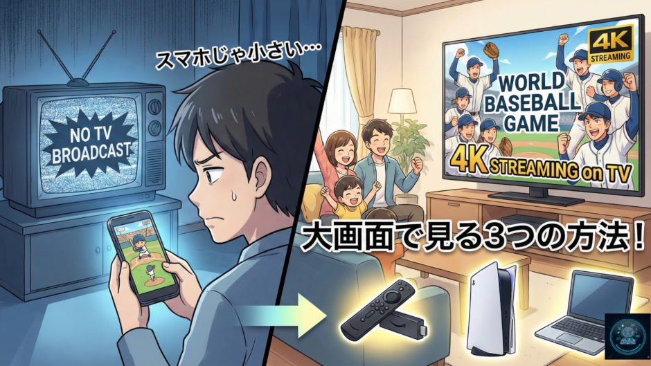2026年WBCをテレビの大画面で見る方法は、以下の3つです。