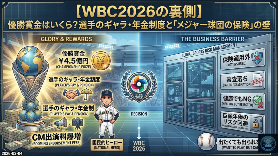 ▼ なぜスター選手が出場できないのか? 恐怖の「5つの審査基準」と「37歳ルール」というWBC保険問題の深い闇については、こちらの記事で徹底解剖しています。